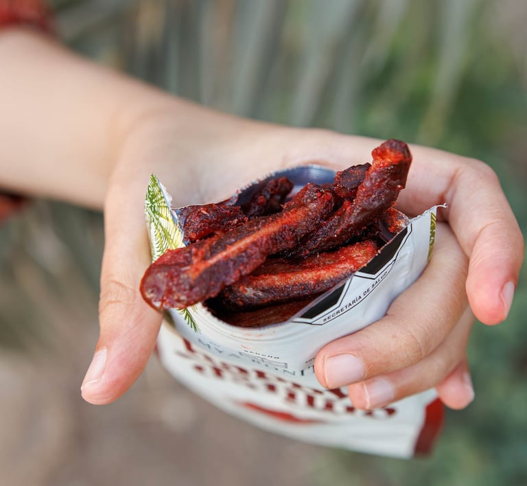 Así de simple. Enchiladitos es una botana elaborada con dátil 100% natural; aprovechamos su sabor dulce y lo transformamos en una nueva experiencia, agregándole ese toque enchilado que le hacía falta. Como cuando no sabes si tienes antojo de algo dulce, de algo salado o de algo picoso, pero en realidad tienes antojo de las tres cosas: ¡ENCHILADITOS es justo lo que necesitas!